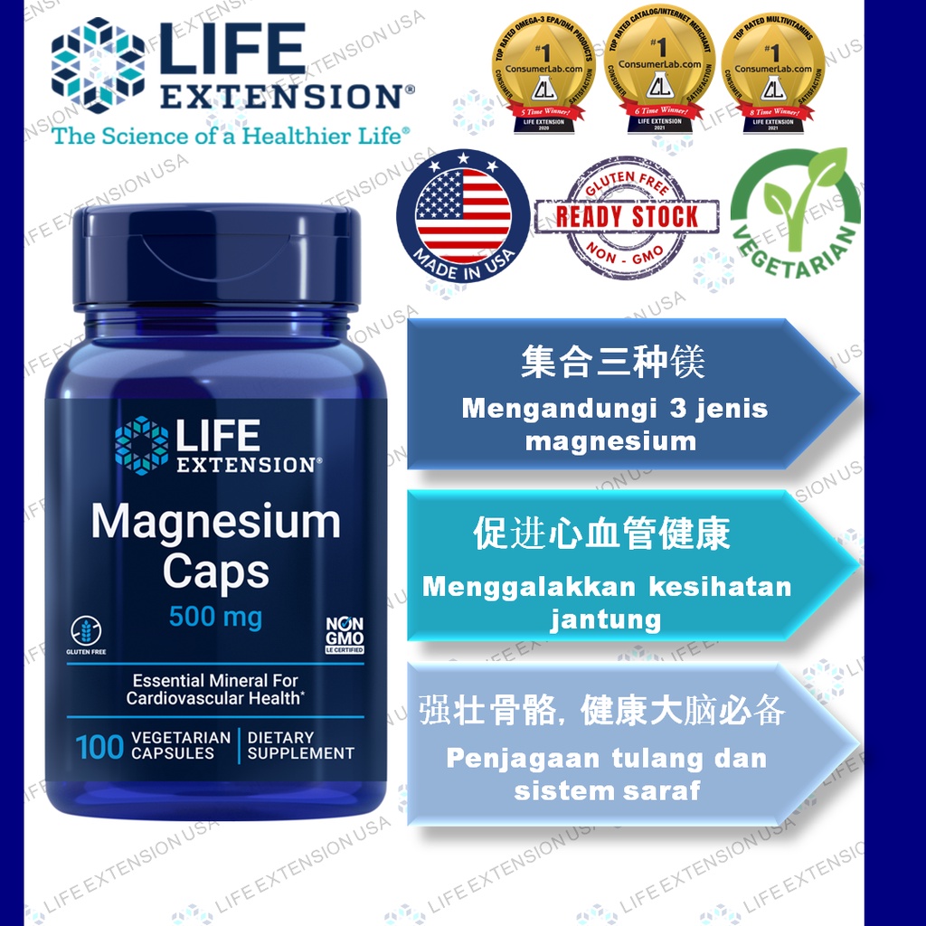 Life Extension Magnesium Caps 500mg 100 Capsules Shopee Malaysia